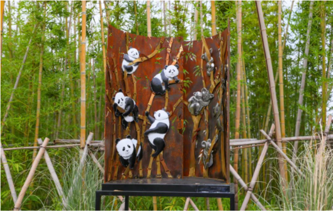 近日,從熊貓基地的熊貓商業街到69.8米高的觀光瞭望塔路邊,多了許多國外“朋友”——29件雕塑藝術作品。
