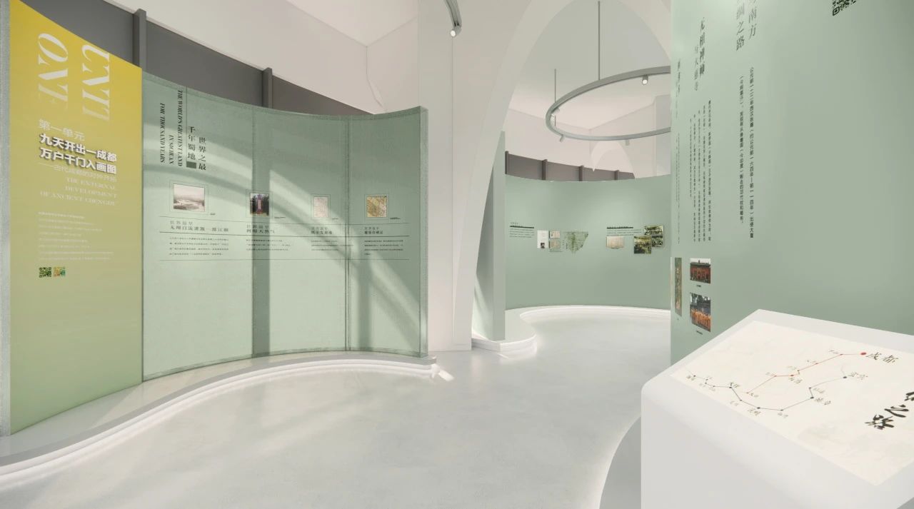 進入成都對外開放歷史展內部空間,“潔白、干凈”在感官上首當其沖,而展陳內容主要呈現了古代成都的對外開拓、近代成都的對外交往、當代成都的對外開放歷史。
