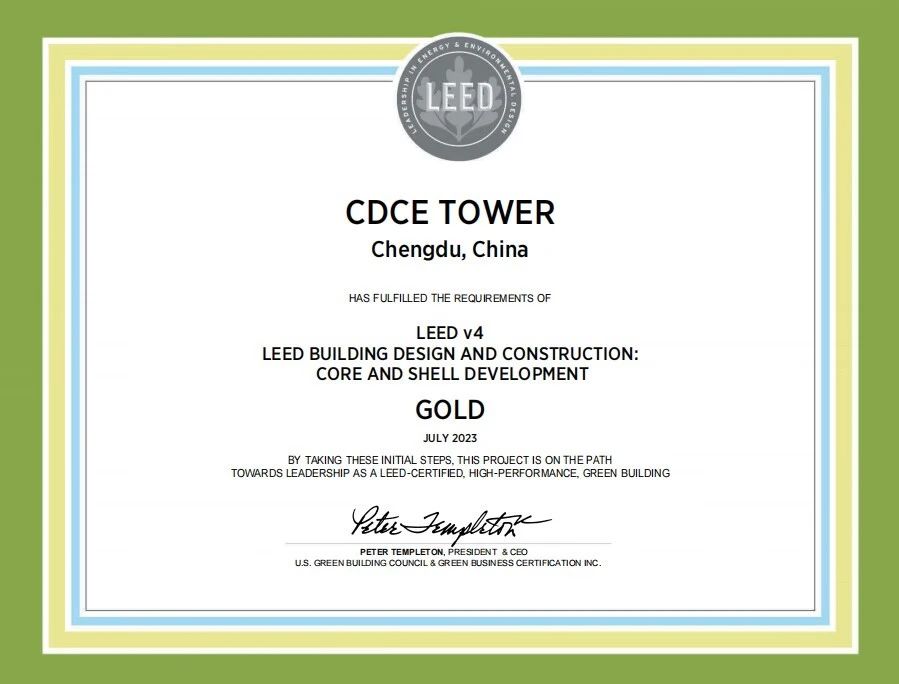 近日,由成都市建筑設計研究院有限公司負責設計的四川天府新區建工大廈建設項目正式獲得綠色建筑委員會(USGBC)授予的LEED金級預認證。