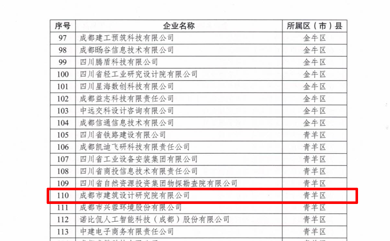 日前,成都市經濟和信息化局官網公布了2023年成都市企業技術中心名單,市建筑院喜獲“成都市企業技術中心”認定。