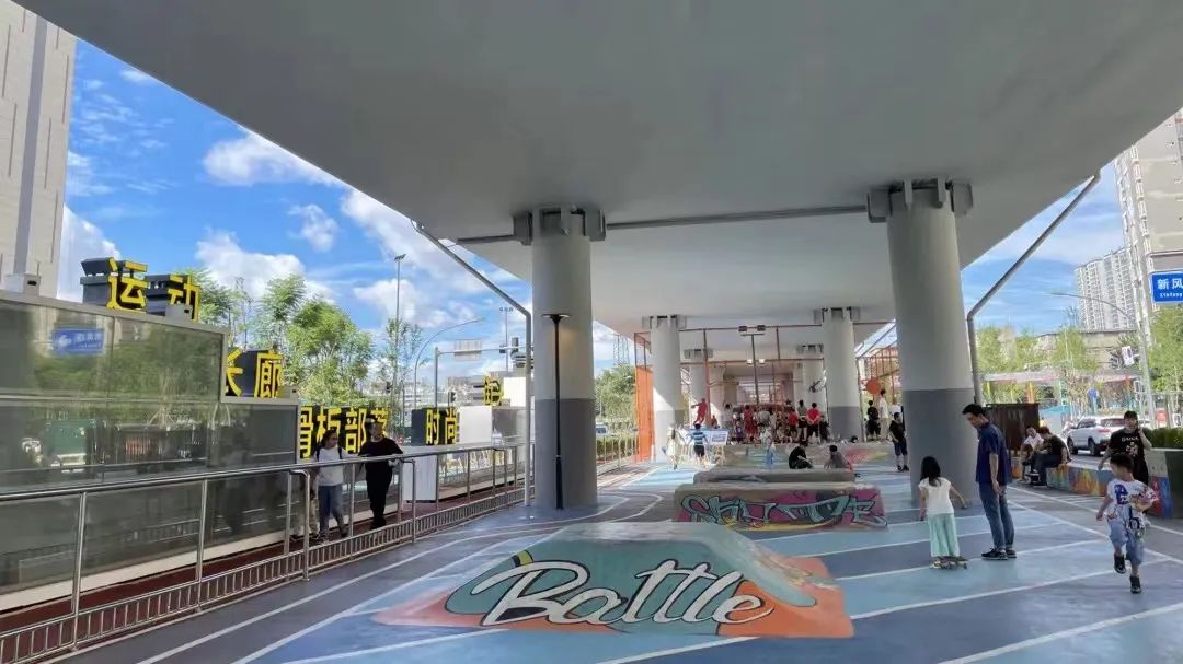 橋下空間全段以覆蓋“全齡段人群”為脈絡,以“時尚運動”為主題,構建起了“時空走廊、彩虹樂園、摩登花街、彩虹樂園、光影舞動、萌童樂園、電音滑板、時尚球場及社區活力”9大主題片區,充分利用城市剩余空間“邊角料”,營造特色公共場景,打造城市的“金角銀邊”。
