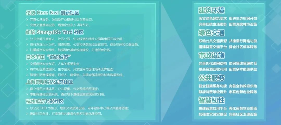 《導則》全面貫徹《成都建設踐行新發展理念的公園城市示范區總體方案》,深度對標國內外先進社區,聚焦片區開發的全維度、全要素、全系統,把握城市功能單元和社區建設的前沿發展趨勢,總結提煉出成都未來公園社區借鑒要點。