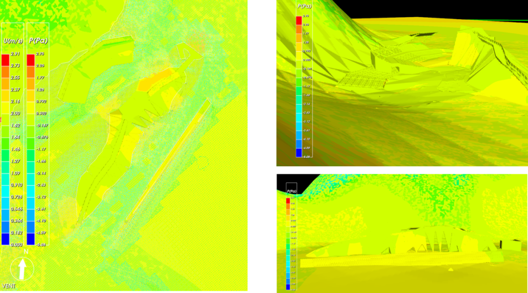 ▲模擬風環境,做到夏季風場場地內人活動區不出現渦流或無風區,冬季風場建筑物周圍人行區風速小于5m/s,保證參觀人群更舒適的體驗。