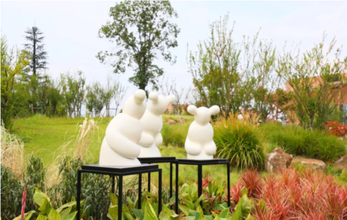 近日,從熊貓基地的熊貓商業街到69.8米高的觀光瞭望塔路邊,多了許多國外“朋友”——29件雕塑藝術作品。