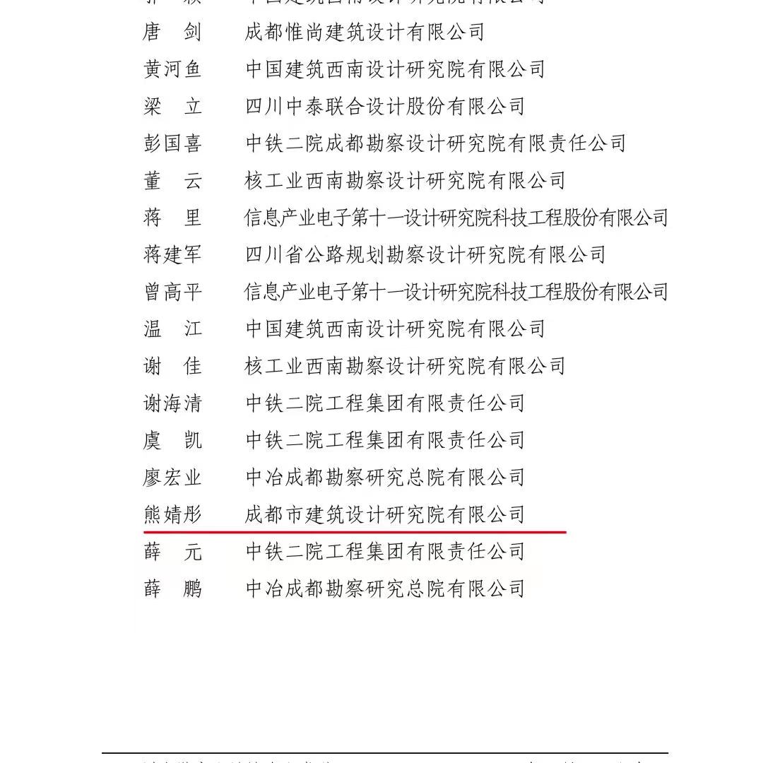 近日,第四屆“四川省優秀青年工程勘察設計師”評選結果揭曉,市建筑院3名青年設計師榜上有名。