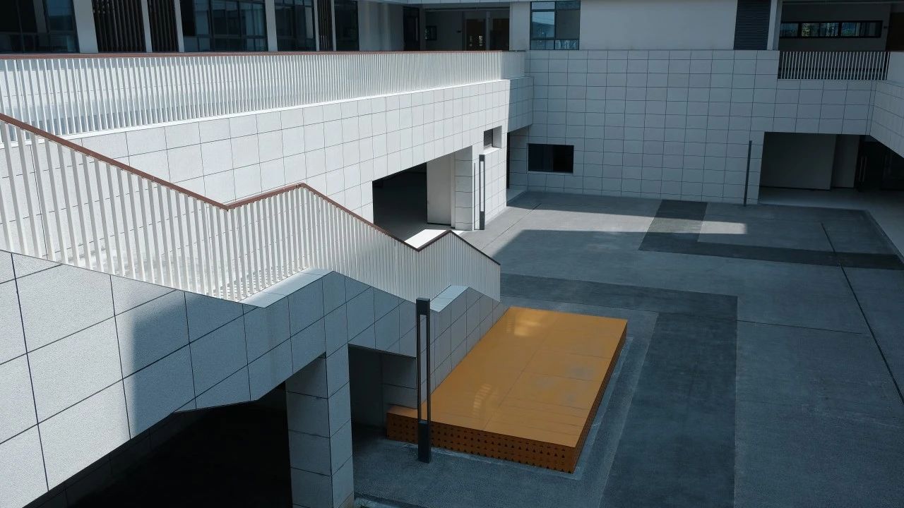 學校在尊重原始地形,兼顧場地內外自然關系的同時,打造出靈活多變的教與學的空間組合;建筑立面采用簡潔線條,空間上結合下沉式庭院,營造自由靈活的生活空間。